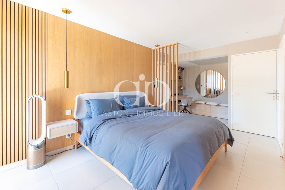 L’espace nuit se compose d’une suite parentale avec bureau, salle de bain, dressing et WC séparé, ainsi que d’une seconde chambre avec salle d’eau indépendante. Une buanderie complète la distribution. Il est possible de créer une 3ème chambre.