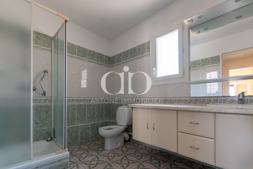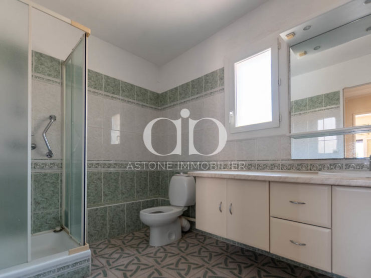 Sur 2 niveaux, cette maison comprend au rez-de-chaussée, une pièce à vivre s’ouvrant sur une belle terrasse à l’arrière et sur le jardin, une cuisine séparée, un WC, à l’étage, 3 chambres, une salle de douche avec WC et un placard, et au niveau du garage, un petit salon, une cuisine et une salle d’eau.