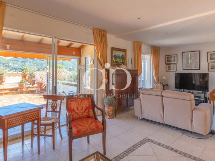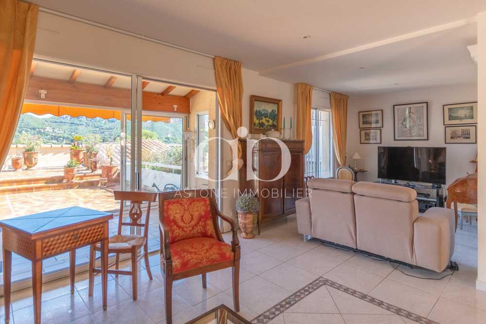 Profitant d’une belle vue sur la mer, le château et le cap canaille, cet appartement climatisé se compose d’une belle pièce de vie avec un coin salon s’ouvrant sur la terrasse, d’une cuisine équipée séparée, de trois chambres dont une suite parentale avec salle de bain, d’une salle d’eau avec toilettes, de toilettes invités, et deux dressings.