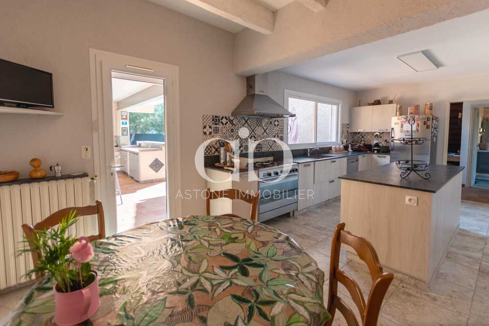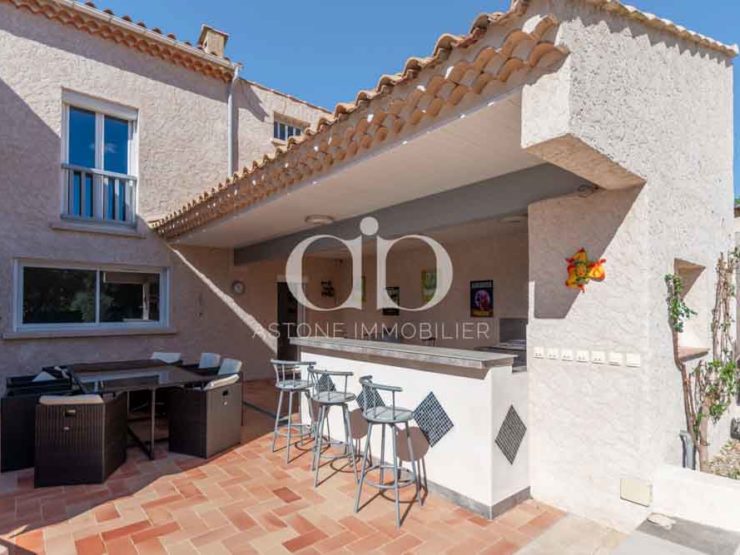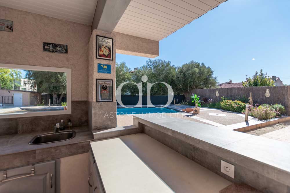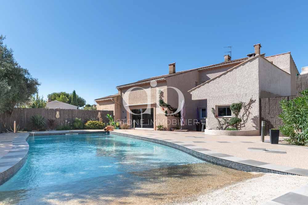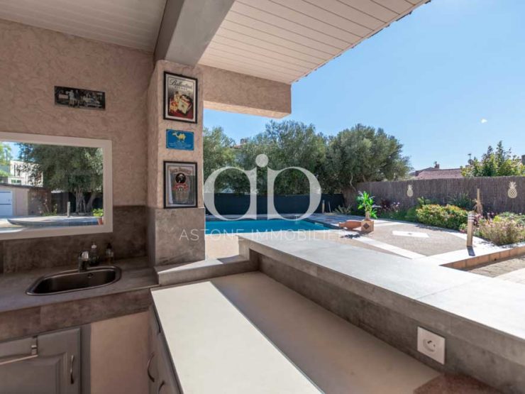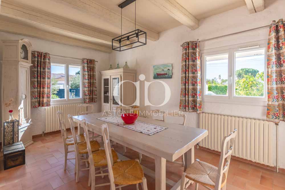 Dans une rue très calme, à proximité de commerces, lycées et collèges et 8 mn à pied des plages, chaleureuse maison de 199m2, non mitoyenne, s’ouvrant sur une superbe piscine de 16X5,5m et comprenant également un appartement T2 séparé de 35m2 pouvant être loué sur une parcelle de 1116m2.