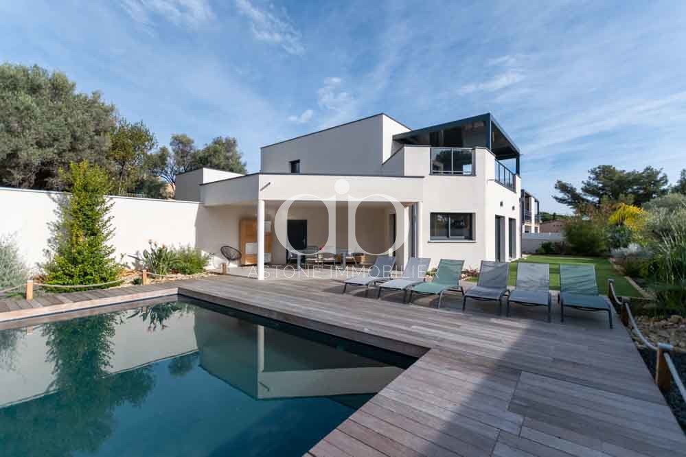 Les prestations sont à la hauteur du cadre : climatisation réversible dans l’ensemble de la maison, piscine avec pompe à chaleur, grandes baies vitrées, volumes généreux. Un garage fermé, trois places de parking extérieur et une cave complètent ce bien idéalement situé à proximité immédiate de la plage du Capelan, du sentier du littoral, des calanques et du club de tennis.
