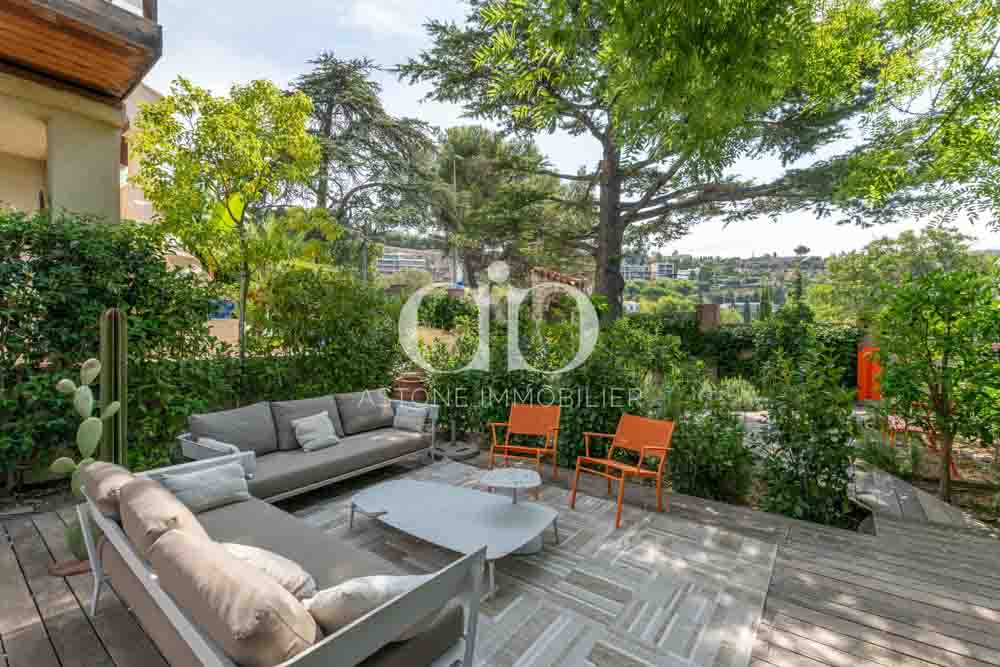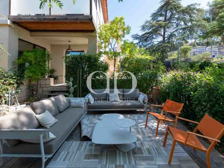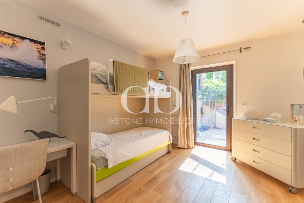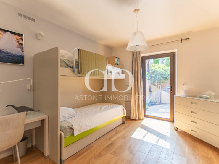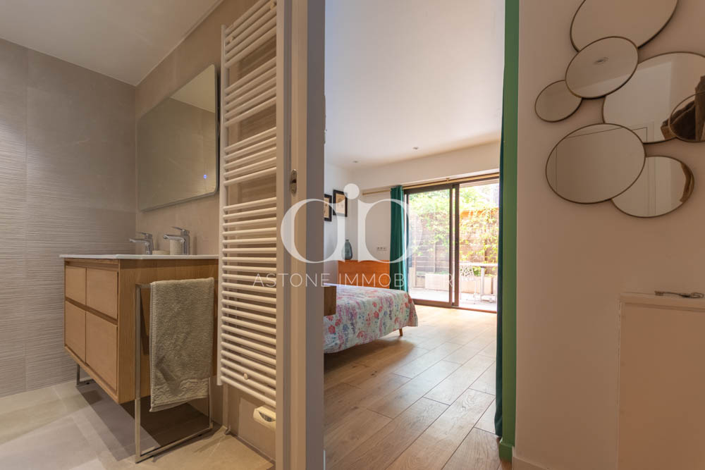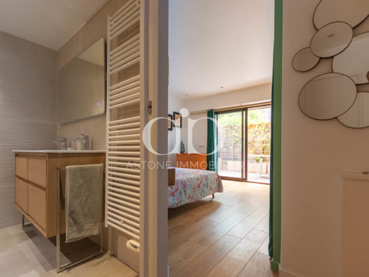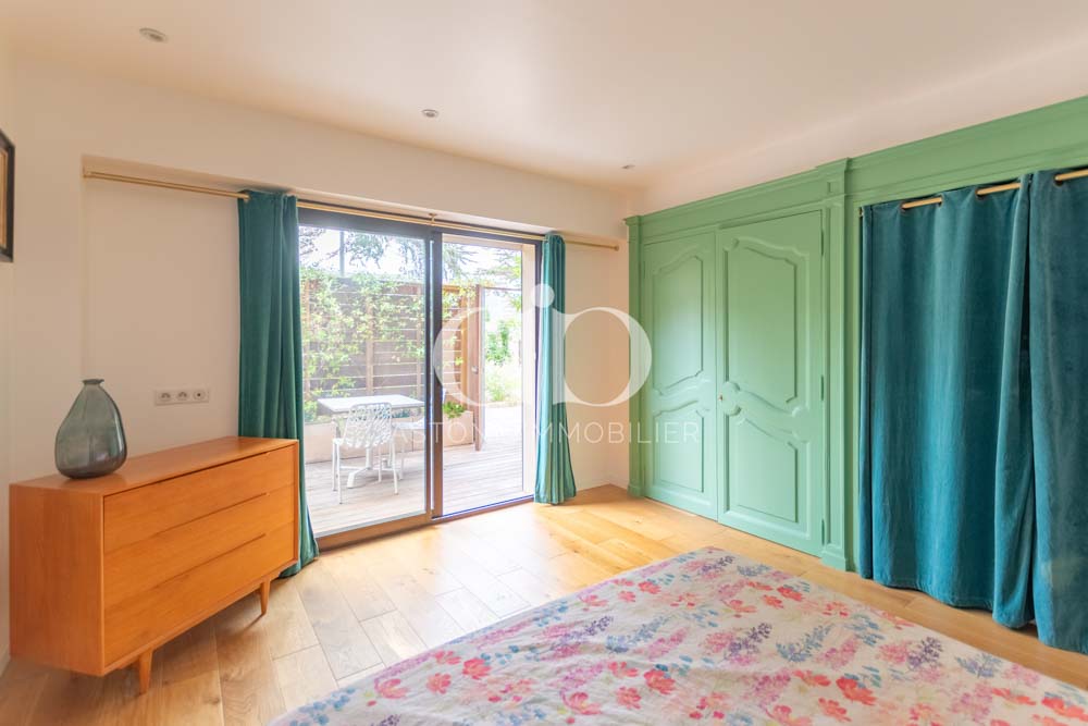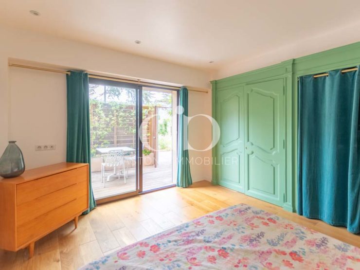 TRES ATYPIQUE – superbe rez-de-jardin composé d’un appartement principal de 140m2 et d’un appartement de 2 pièces et 50m2 environ reliés entre eux par un couloir et profitant de plusieurs terrasses et jardins.