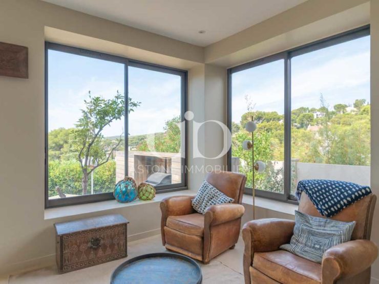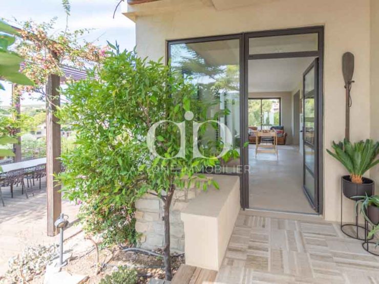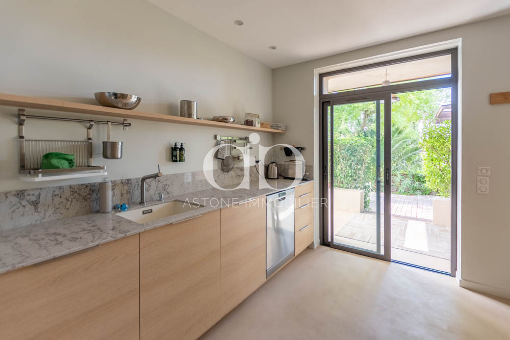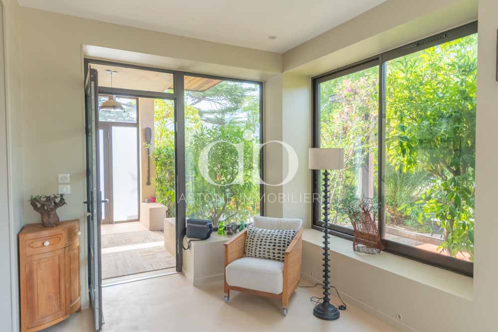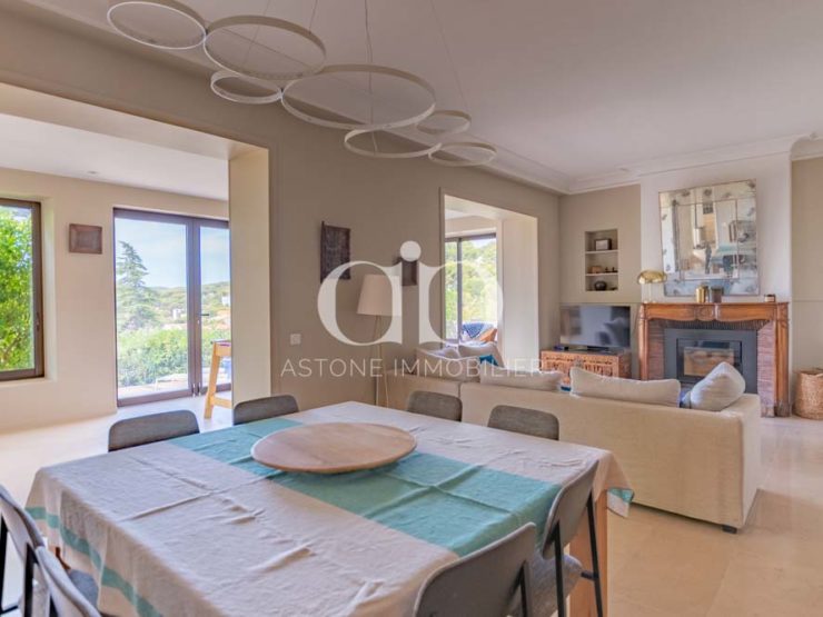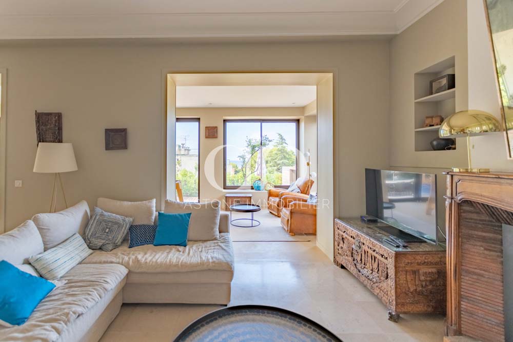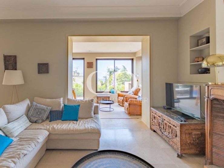 Très ouvert sur l’extérieur et notamment sur une belle terrasse/jardin au sud de plus de 75m2, l’appartement principal comprend une belle salle de réception en 2 parties avec une grande cheminée, une grande cuisine séparée entièrement équipée, 3 grandes chambres avec chacune leur salle de douche et toilettes en suite dont 2 avec leurs propres terrasses, une buanderie, et des toilettes invités. Accessible par un couloir ou par l’extérieur avec sa propre entrée, un appartement de 2 pièces avec une pièce à vivre avec cuisine US s’ouvrant sur une terrasse privative au sud, une chambre donnant au nord sur une petite terrasse, et une salle de douche avec toilettes.
