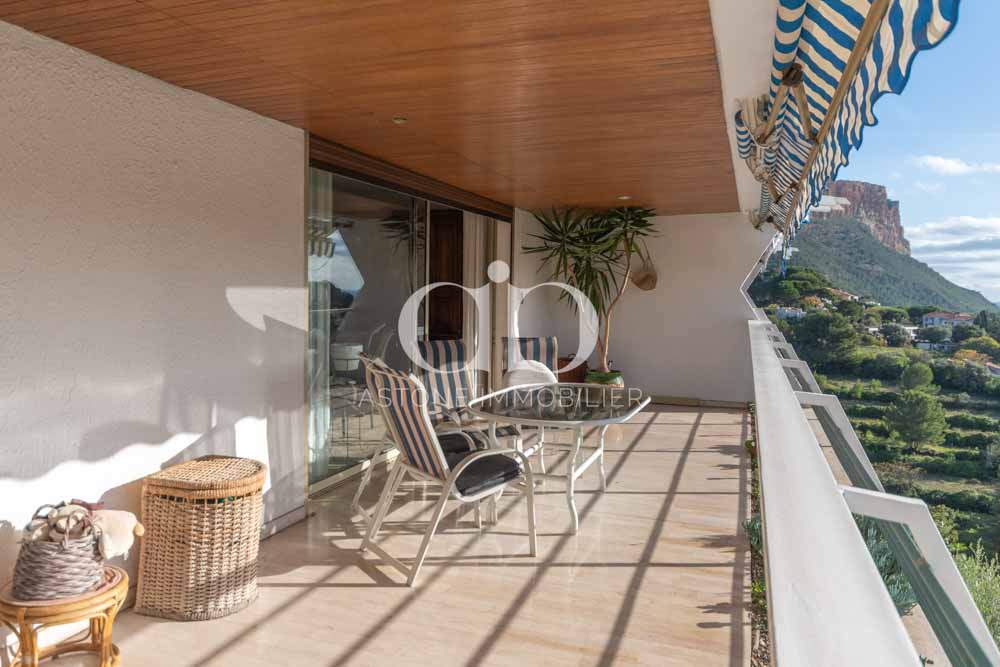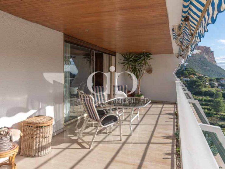 En plein coeur de Cassis, dans une résidence très recherchée avec ascenseur et piscine, superbe appartement de 91m2 Carrez (97,5m2 habitable) profitant d’une vue magnifique sur le village, le château, le cap canailles et la mer depuis une terrasse de 25m2.